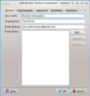 | 16:58, 31 December 2011 | KontacT integration kmail identity settings edit.png (file) | 38 KB | Advanced configuration of your new Kmail identity. | 1 | |